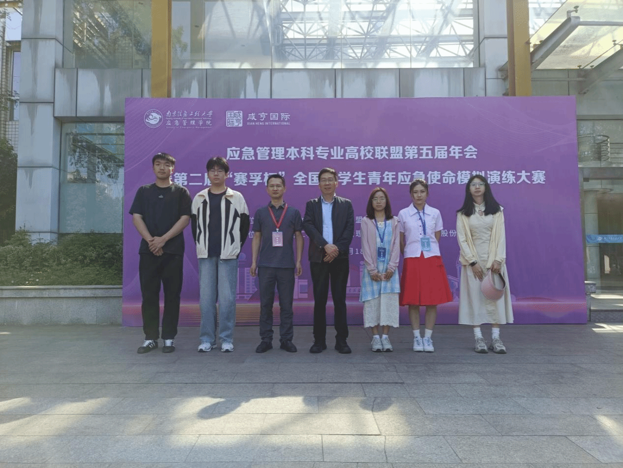 4月19-20日,由应急管理本科专业高校联盟与南京信息工程大学联合主办的应急管理本科专业高校联盟第五届年会暨第二届“赛孚杯”全国大学生青年应急使命模拟演练大赛在江苏南京举行。本次会议以“智慧应急·产教融合——AI赋能的应急管理人才培养新范式”为主题,全国30余所本科高校近60支代表队、300余名师生参加会议和大赛。太阳集团官网副院长唐厚兴受邀出席大会,由查东平和闵炜琪老师指导,2023级应急管理专业学生林苏秀、卢逸晗、吴延娟、郭玉琪、李雨航组成代表队参加此次比赛。