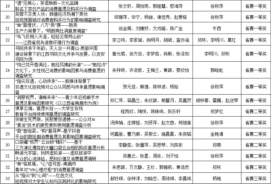 表1:研究生组获奖名单