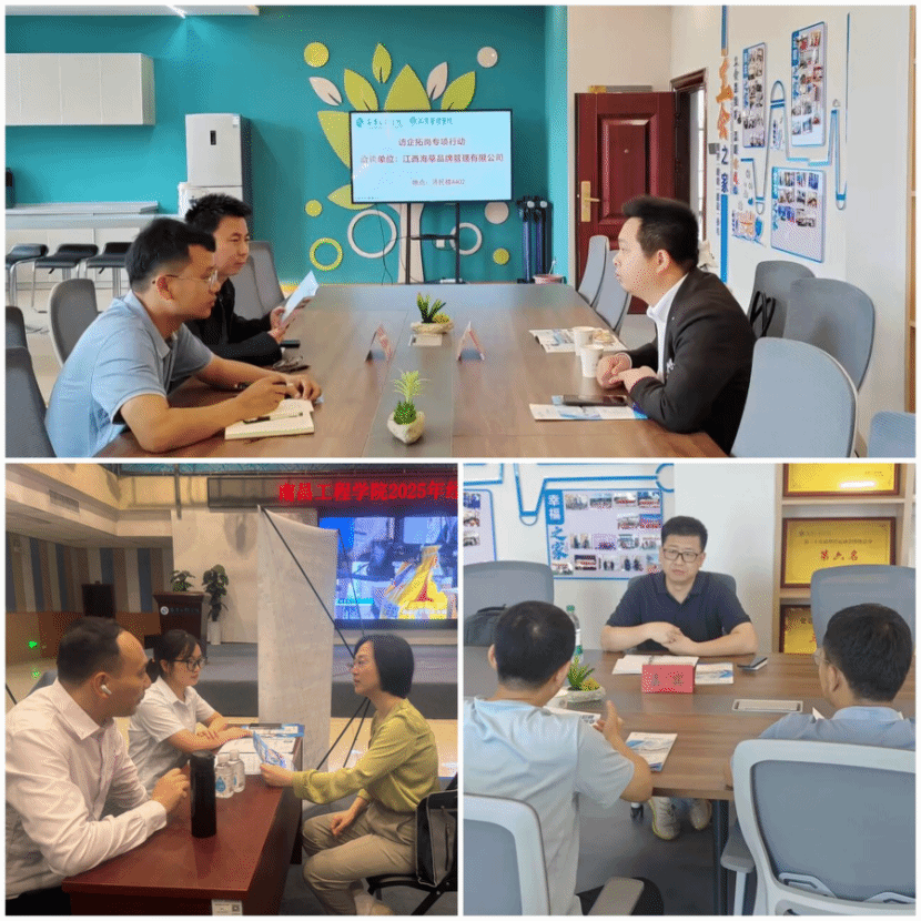 活动中,胡杨成对企业代表的到来表示热烈欢迎,向他们详细介绍了学院的发展概况、专业设置、人才培养等情况,希望与企业在实习就业、人才培养、产教融合等方面进行全方位深度合作。盛辉物流集团有限公司人资副总监李晟、深圳市华展国际物流有限公司总经办主任祝建刚、江西海草品牌管理有限公司人事经理何佳分别介绍了所在公司的主营业务、产品服务、人才需求等情况,三家企业代表就人才求职招聘与太阳集团官网相关老师开展交流探讨,达成了校企人才精准对接的合作意向。