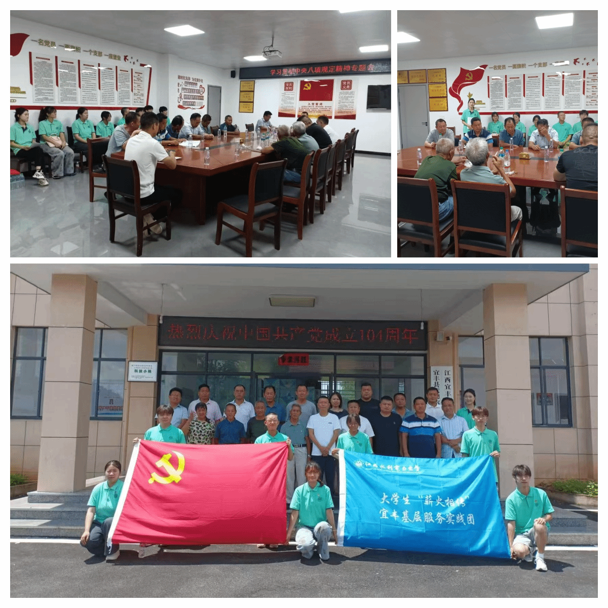 为庆祝中国共产党成立104周年,传承红色基因,厚植家国情怀,江西水利电力大学大学生 “薪火相传” 宜丰基层服务实践团于7月1日深入宜丰县张家村,与当地村委会联合开展主题鲜明、内容丰富的庆“七一”实践活动。活动聚焦共庆华诞、红色寻访与乡村调研,旨在引导青年学子在实践中感悟初心使命,汲取奋进力量。